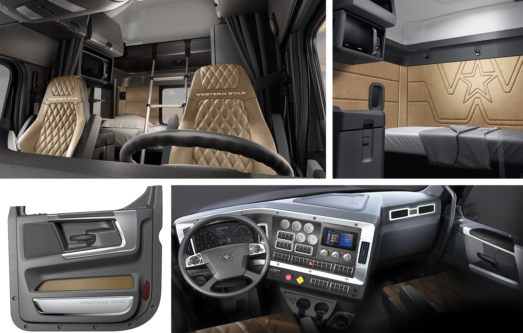 When you’re behind the wheel of your X‑Series, the workday immediately feels easier. Western Star cabs are designed around the operator—featuring a wing dash layout, intuitive controls, and customizable trim options that work together to create a quieter, more comfortable, and more productive environment from the moment the door opens.