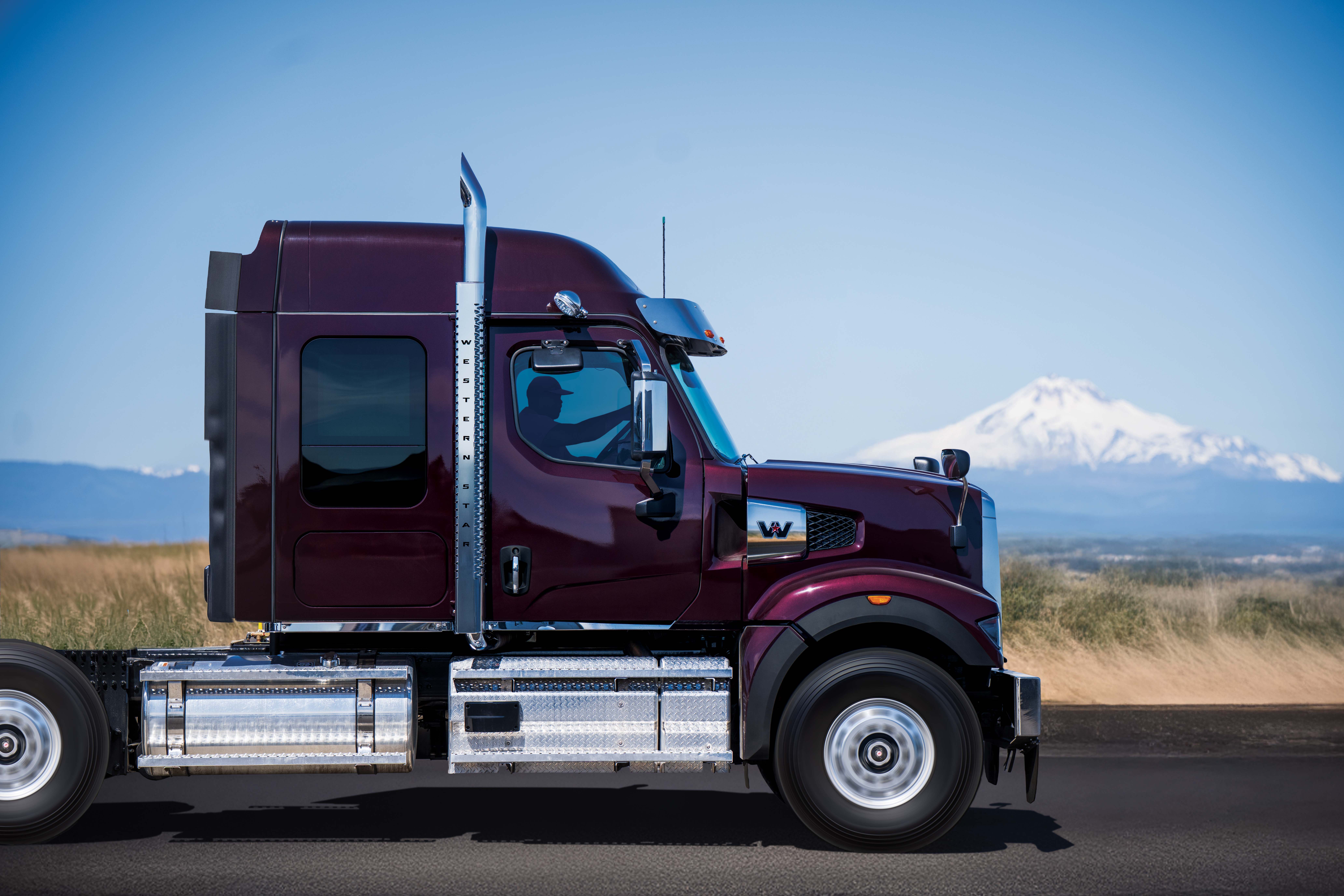 Built for operators who need serious pulling power, the optional Power Hood on the Western Star 49X (available for set-forward configuration) is purpose-built to support larger radiator packaging for high-output engines, including DD15 and DD16. By accommodating the increased cooling demands of applications that require the highest gross combined weight limits, it delivers the performance needed for jobs ranging from heavy-haul, to oil field, and to severe-duty use cases - all while turning heads with its long and tall Western Star hood design.